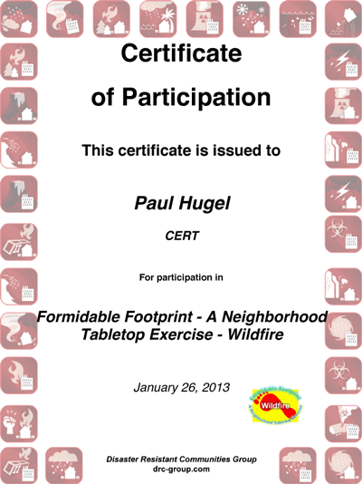 A small group assembled from Maui Community Emergency Response Team (CERT) to participate in an online disaster preparedness exercise codenamed Formidable Footprint – A Neighborhood Tabletop Exercise- Wildfire.